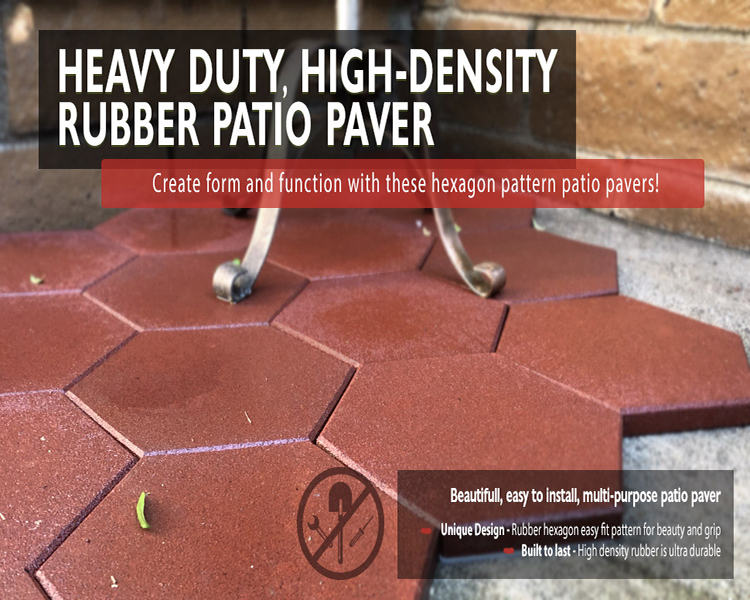 The Hexagon Rubber Pavers are 3/4” thick and ideal for garden paths, front or backyards, park trails, garages, etc.